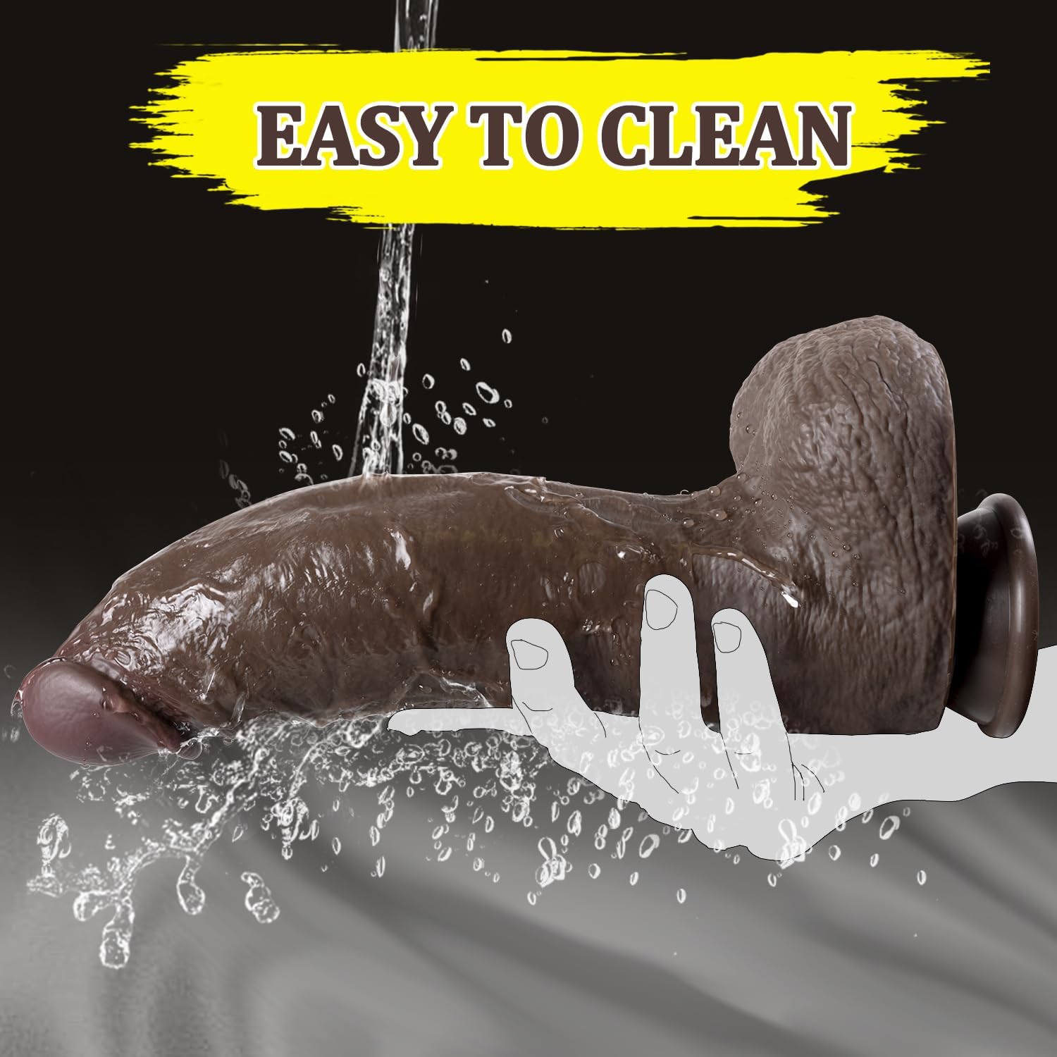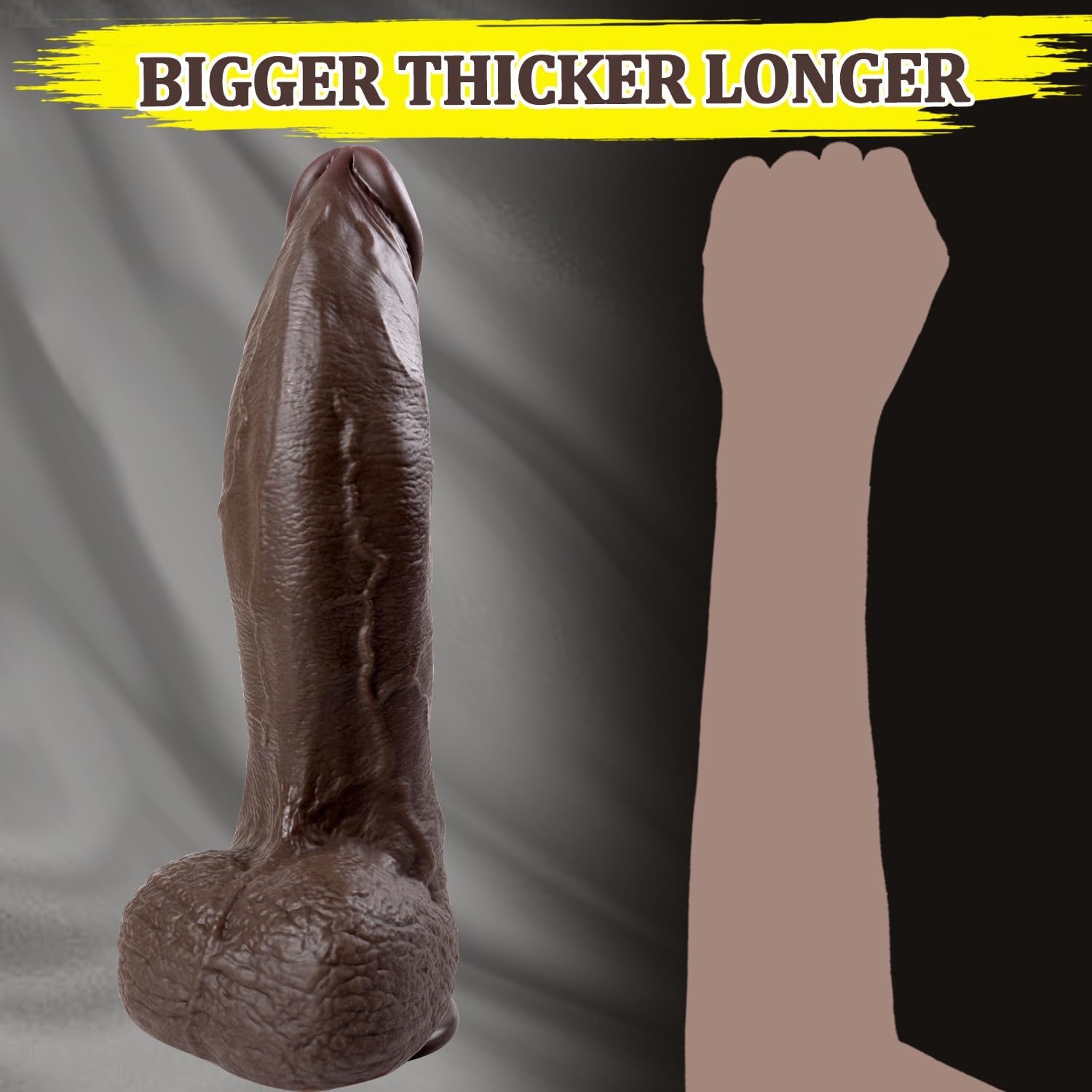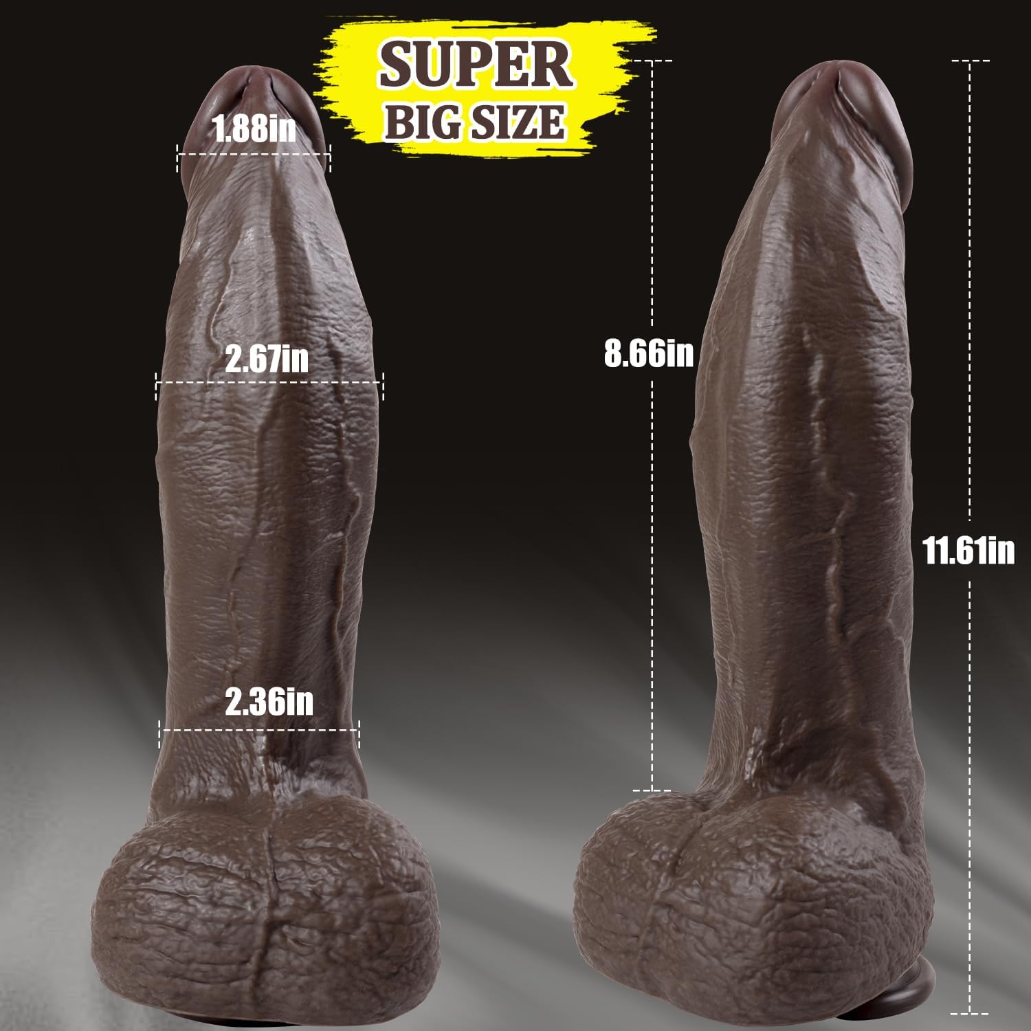 - 2.67″ Diameter Super Thick, Realistic BBC Dildo: With 11.61 in total length, 8.46 in circumference at the thickest part. This is a eye-rolling leg-shaking soul-taking sex toy. The black dildo is super girthy, would not recommend this toy for beginners,but for advanced player who seek the deeper pleasure. The thickness and width were absolutely perfect, giving her that deeply satisfying, stretched feeling she craves. Every inch felt amazing, filling her completely and leaving her breathless