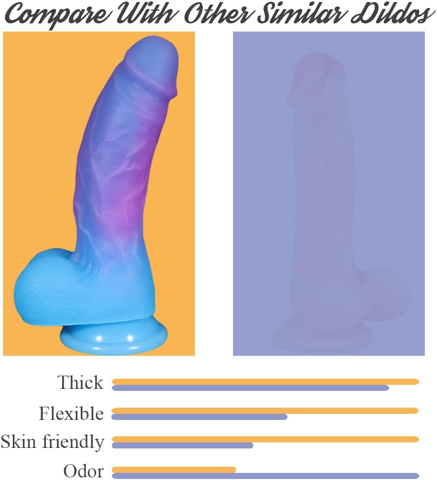 - Body Safe Material: This realistic dildo is made of 100% medical grade liquid silicone, Which is soft/flexible/healthy/odorless/safe. The lifelike thick dildo G-spot stimulator replicates the erect male penis and is strong yet flexible for more targeted internal stimulation. Safe to use with water-based lubricants